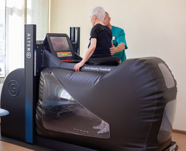 Для восстановления используют 25 единиц высокотехнологичного оборудования. Роботизированные аппараты механотерапии помогают заново учиться ходить, системы разгрузки веса снижают нагрузку на суставы.