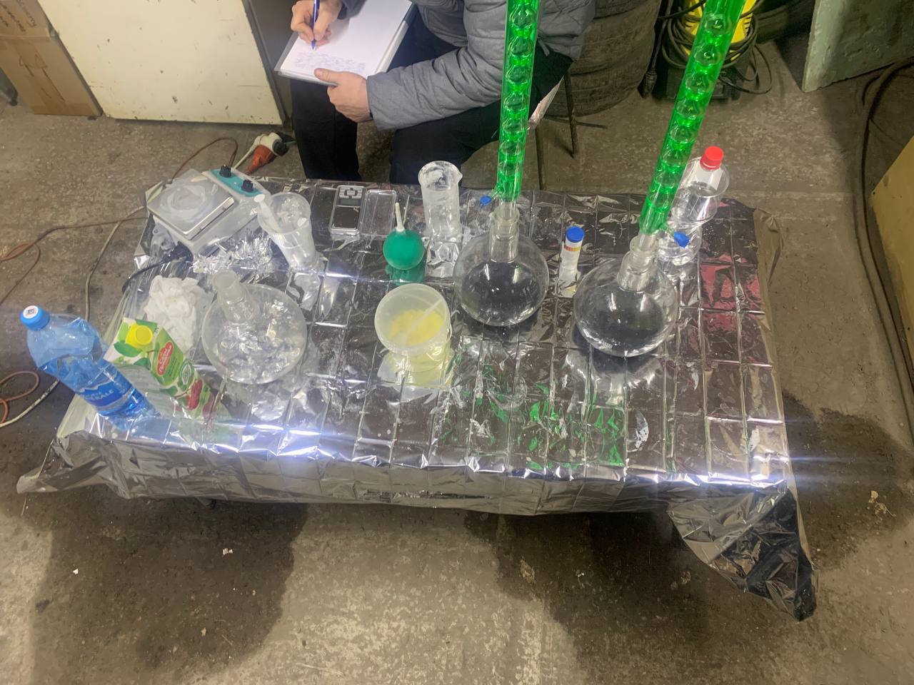 В Железногорске двое местных жителей оборудовали в гараже лабораторию для производства наркотиков. Один из них летом 2025 года нашел в интернете инструкцию, как сделать амфетамин. После этого он полгода покупал специальное оборудование, химикаты и даже поставил в гараже вентиляцию.