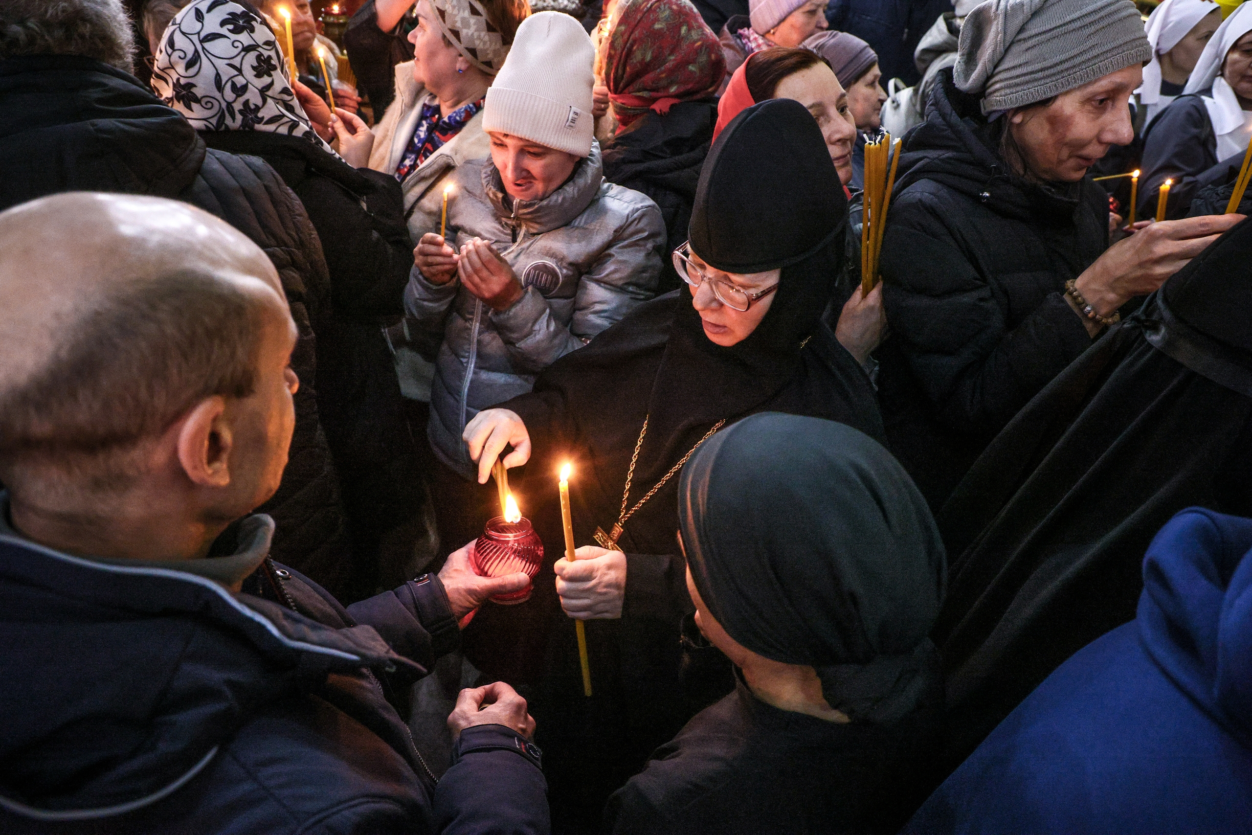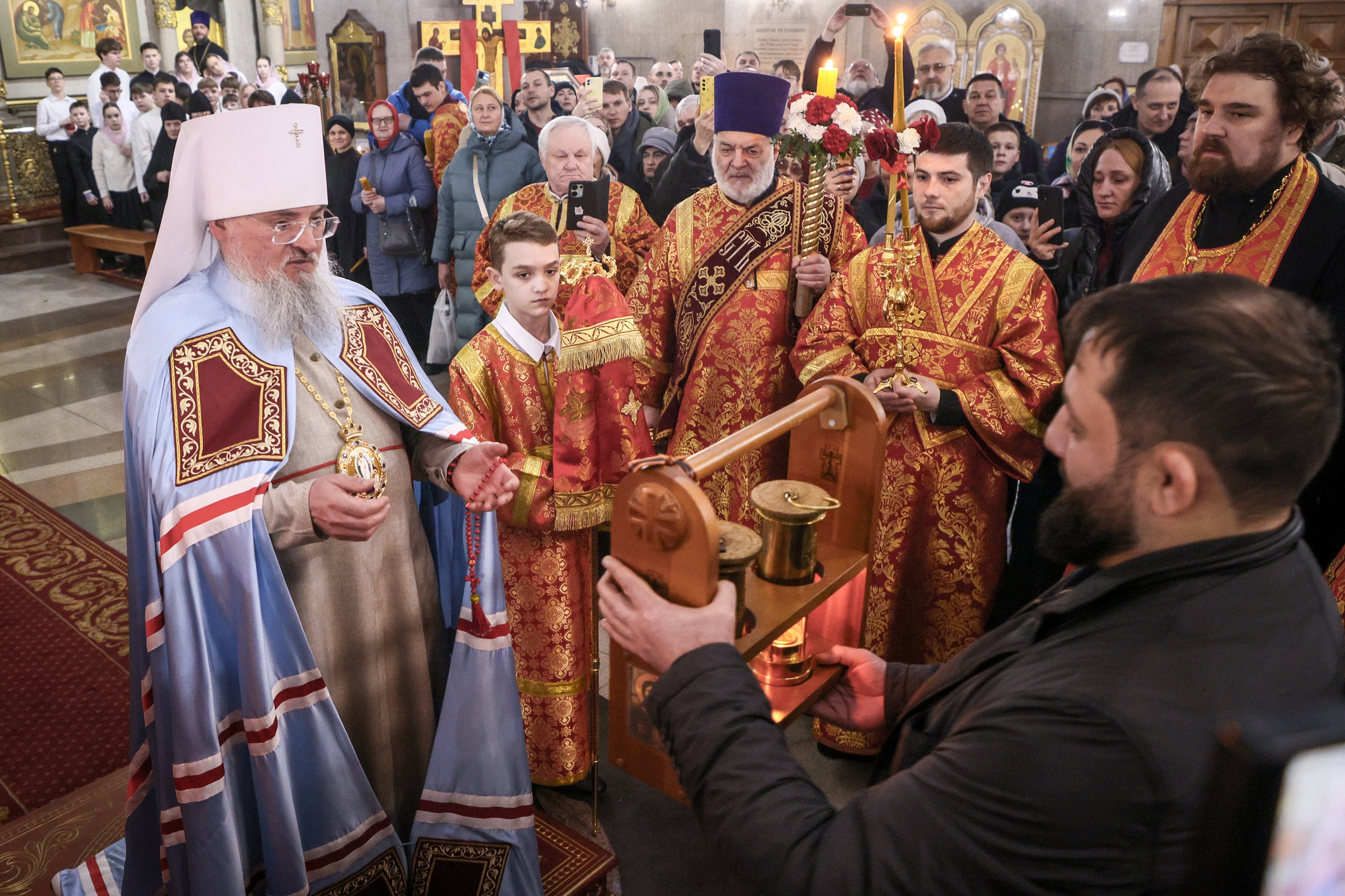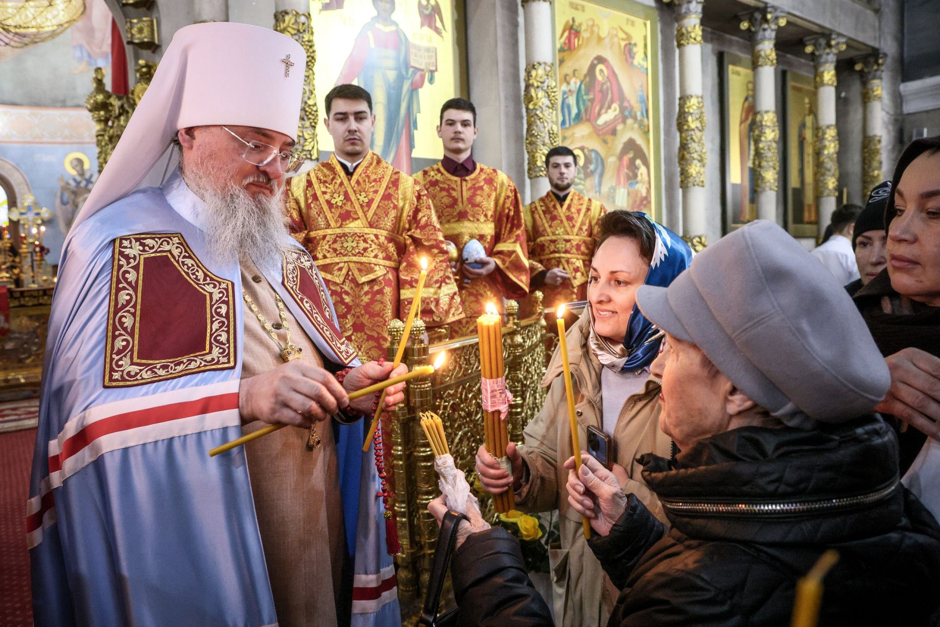Верующим в Красноярске в Пасхальное воскресенье раздали частицы Благодатного огня (фоторепортаж)