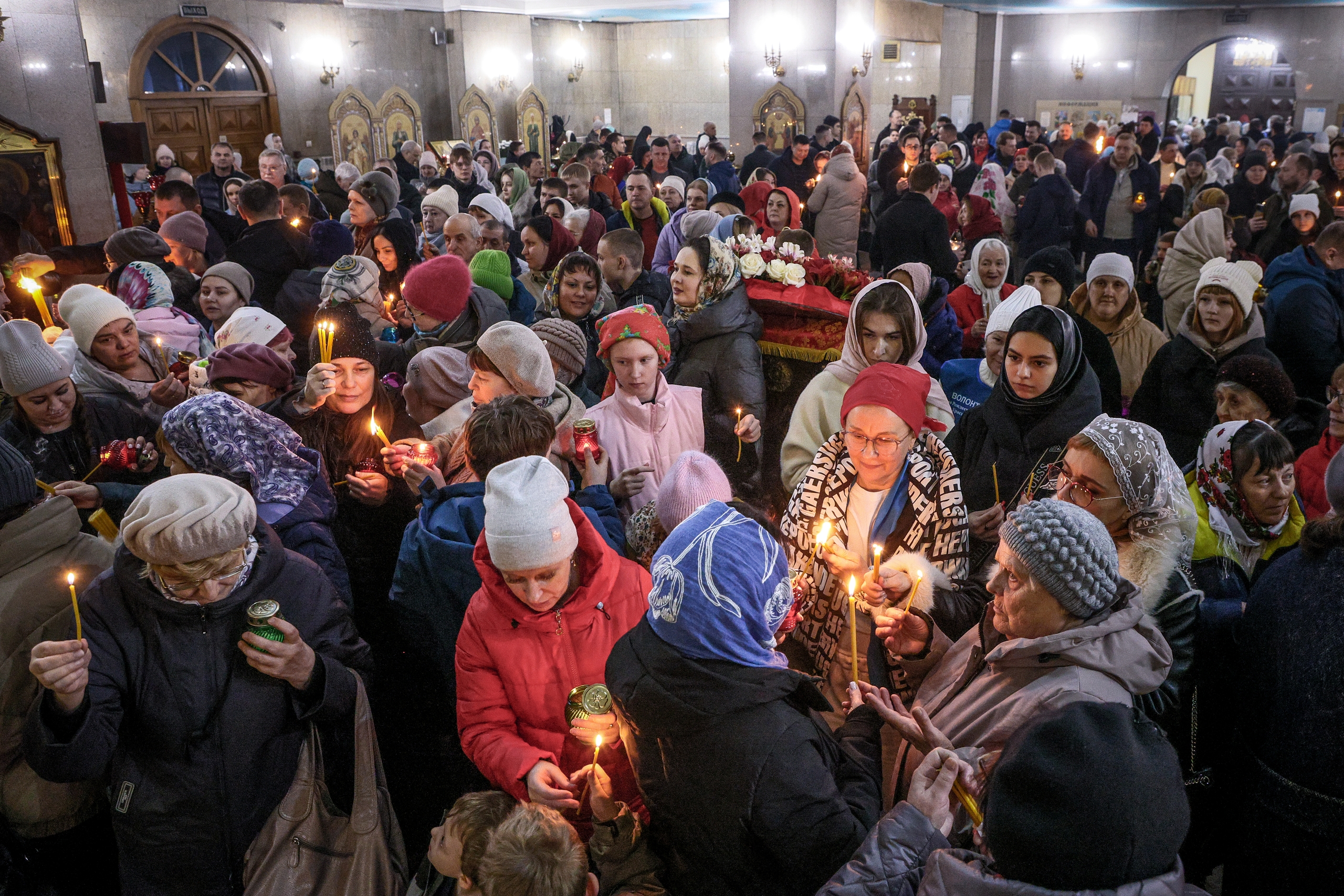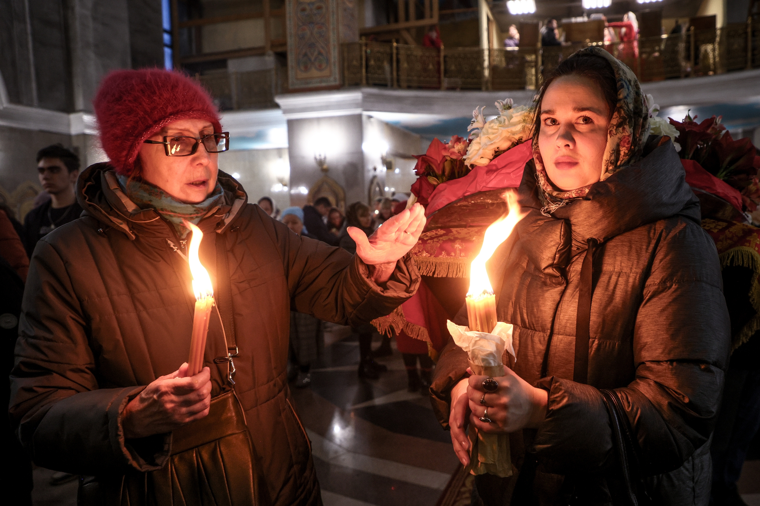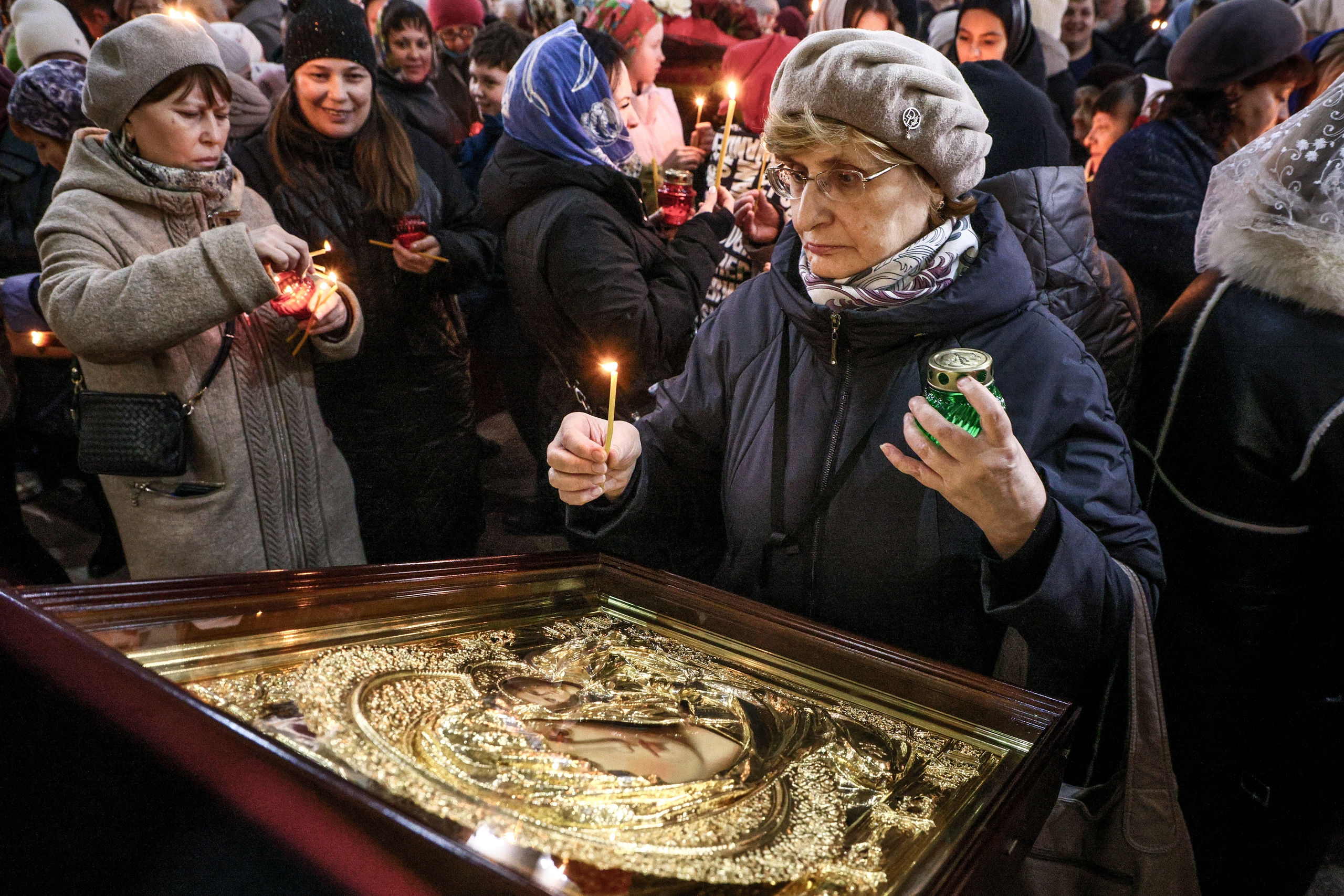 Верующим в Красноярске в Пасхальное воскресенье раздали частицы Благодатного огня (фоторепортаж)