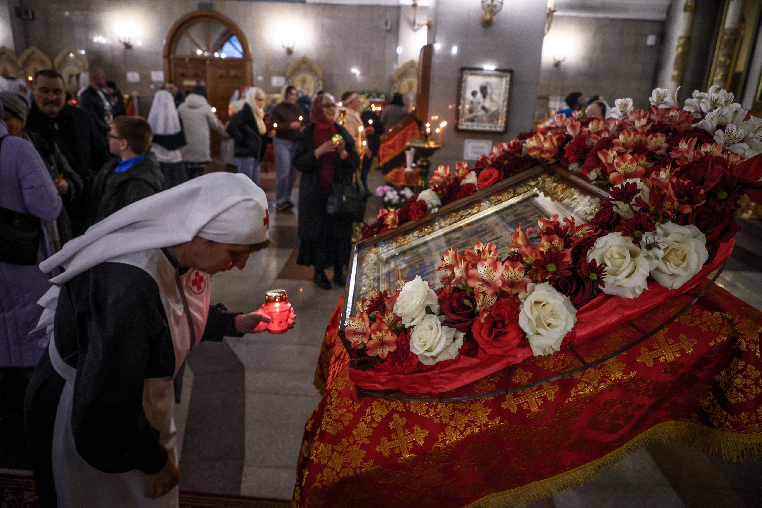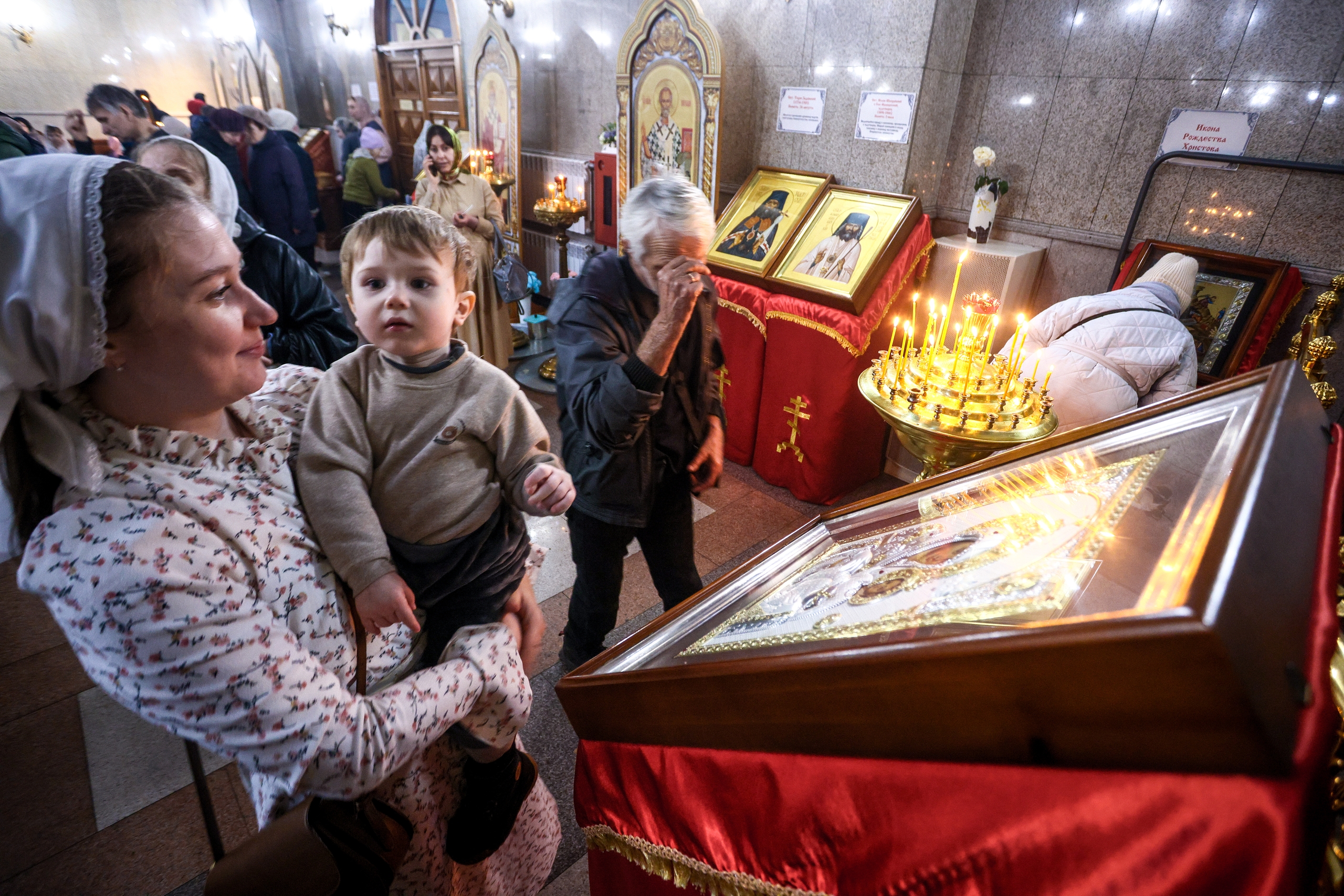 Неугасимая лампада прибыла в храм Рождества Христова (ул. Щорса, 44а). Оттуда частицы огня перенесли в другие храмы города — прихожане также смогли получить его для своих лампад и свечей.