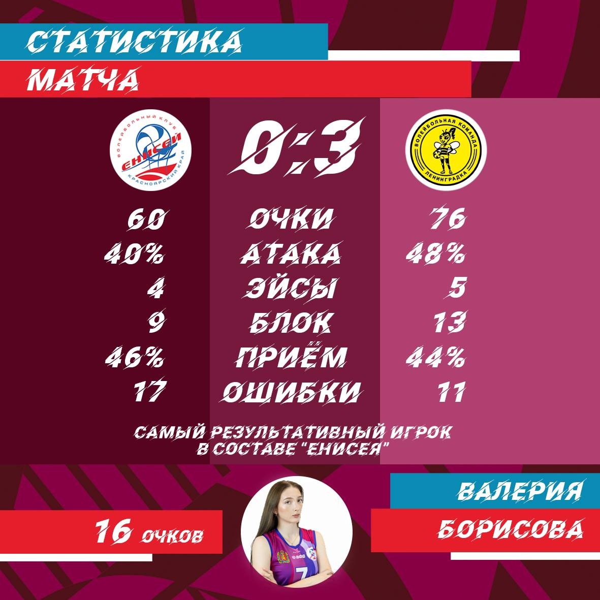 Следующий матч «Енисей» проведёт на выезде. В среду, 29 октября, сибирячки сразятся с «Заречье-Одинцово» из Московской области. Затем болельщиков ждут три игры во Дворце спорта им. Ивана Ярыгина: 1, 9 и 15 ноября.