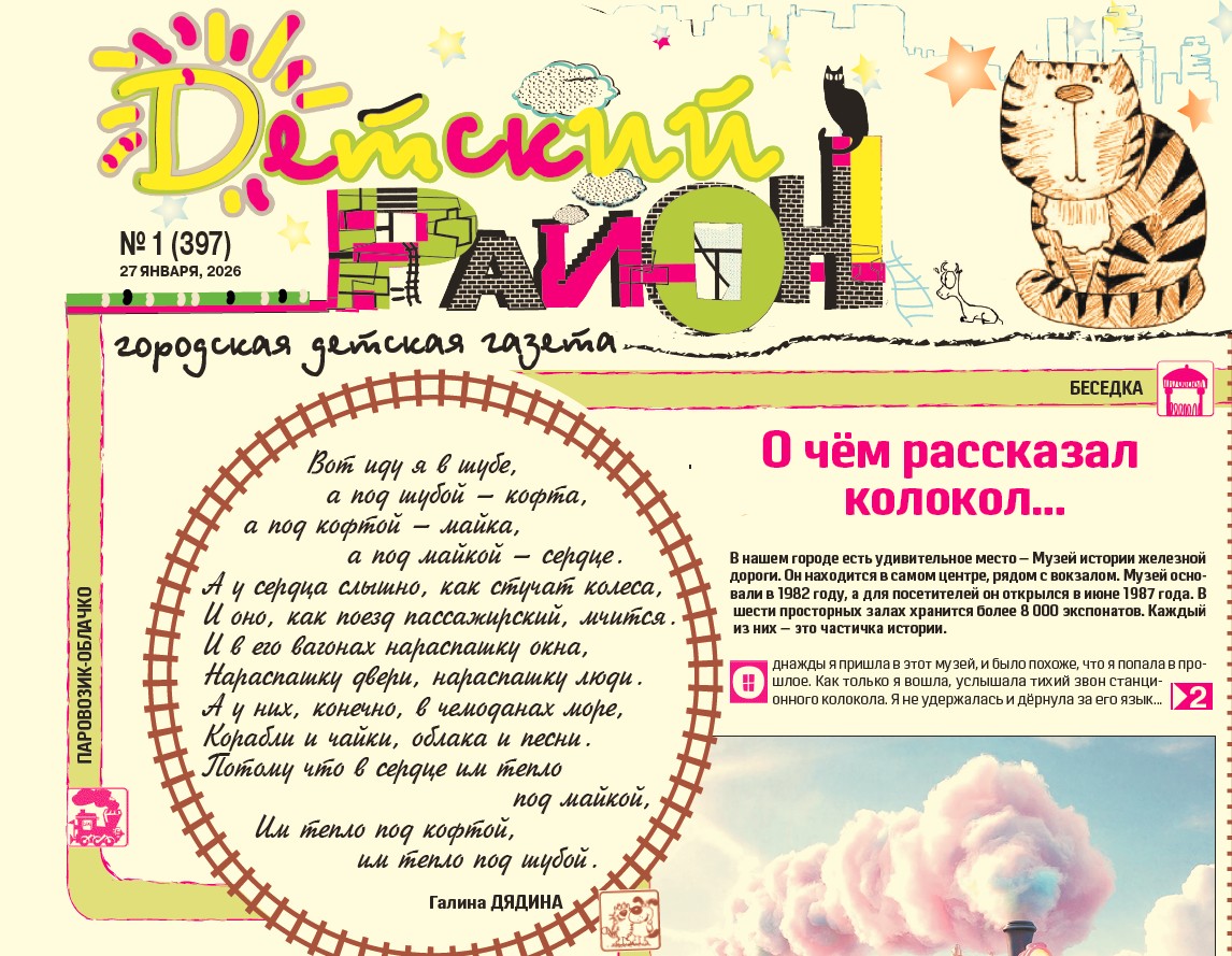 Предлагаем ознакомиться с № 1 (397) городской детской газеты «Детский район» — приложением «Городских новостей». Свежий выпуск в печатном виде можно найти в номере от 27 января.