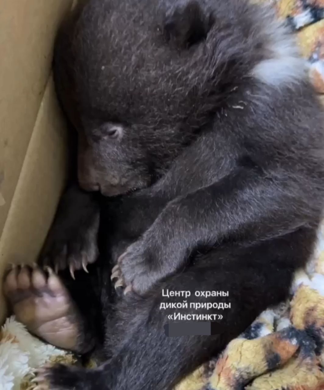 В красноярский центр охраны дикой природы «Инстинкт» доставили месячного медвежонка-самца. Малыш лишился мамы на лесоповале в селе Пировское: на берлогу упало дерево, и медведица в панике выскочила, задавив двух детенышей. Один выжил.