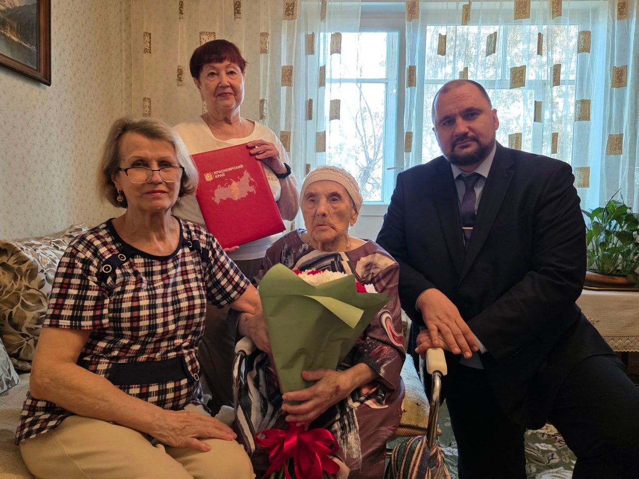 В Красноярске накануне, 12 февраля, со 105-летием поздравили жительницу Центрального района Анну Ивановну Новикову. Ей вручили памятный адрес от губернатора Михаила Котюкова.